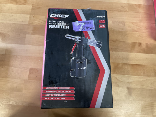 No reviewsCHIEF Professional 1/4" Air Hydraulic Riveter_______________________________ *TOOL SHED ITEM — READ BEFORE YOU BUY*CONDITION: Mixed — Items in this listing are sourced from returned or surplus pallets.Some tools are brand new, some are lightly used, some...Sale price $60.00Regular price $149.00