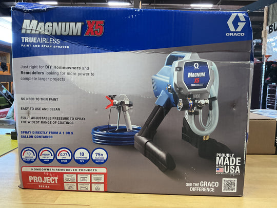 No reviewsGraco Magnum x5 TrueAirless Paint and Stain Sprayer *TOOL SHED ITEM — READ BEFORE YOU BUY*CONDITION: Mixed — Items in this listing are sourced from returned or surplus pallets.Some tools are brand new, some are lightly...Sale price $325.00Regular price $390.57 -