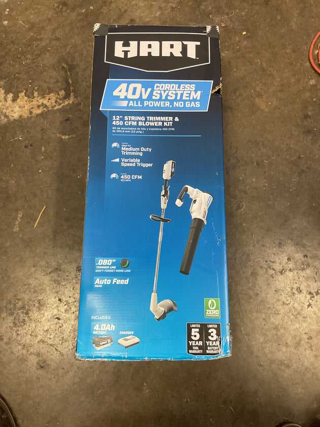 HART 40V 12" String Trimmer and Blower Combo Kit, Generation Two, (1) 4.0Ah Lithium-Ion Battery