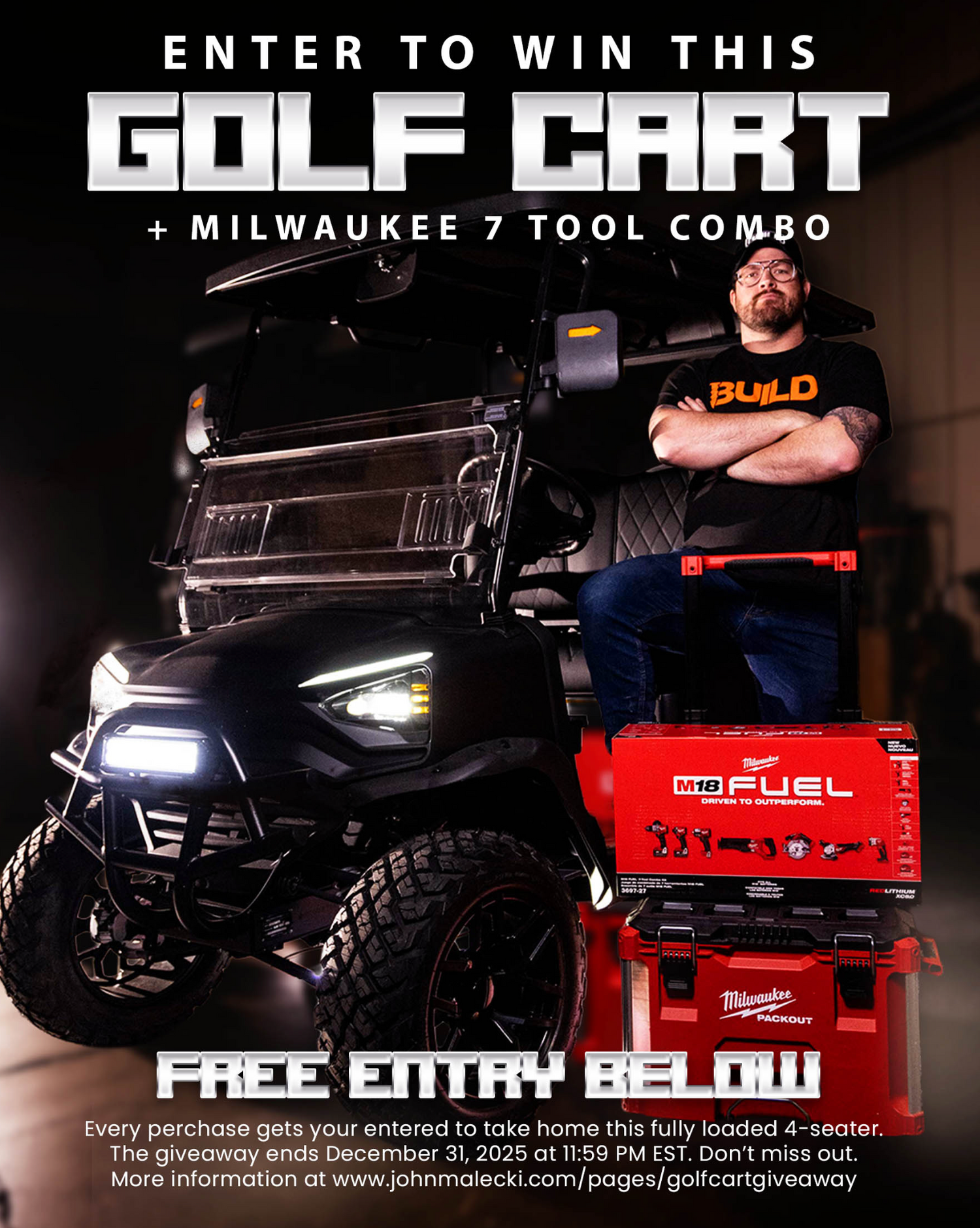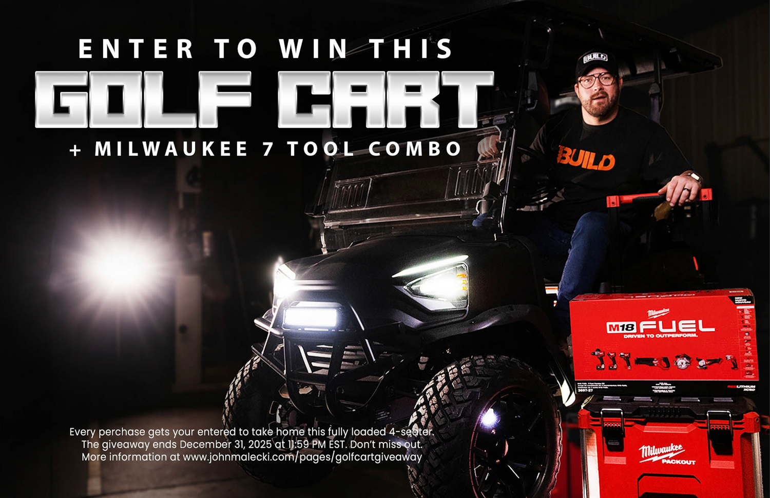 Win an electric golf cart, a Milwaukee Packout, a 7-tool M18 Fuel kit, and a Miter Saw with a total value of $9,928.99. Enter for free with your email below, and every dollar you spend on our website earns you extra entries.